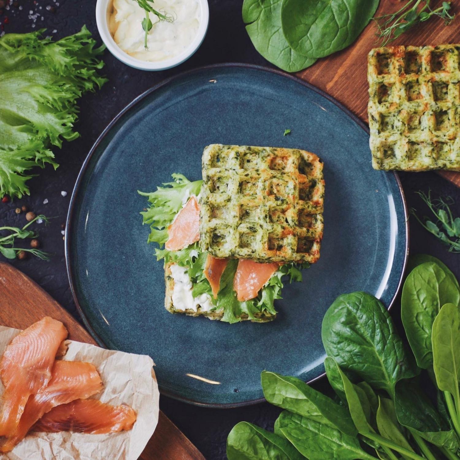 Весна вдохновила нас на большое сезонное обновление меню. Решили порадовать вас новыми интересными блюдами, знакомство с которыми предлагаем начать с ярких венских вафель из шпината с форелью